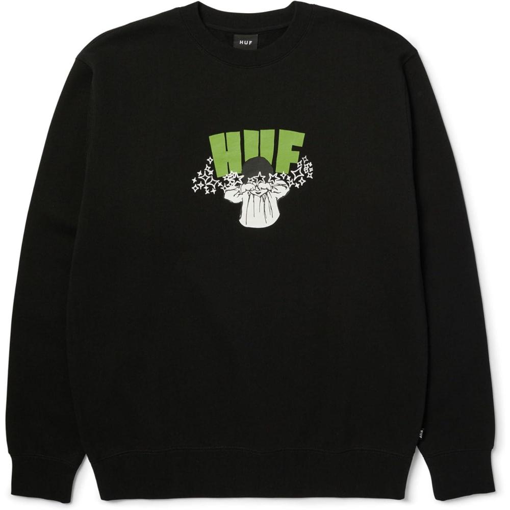 HUF Dazed Crewneck Sweatshirt for Men, Comfortable Streetwear for Skateboarding or Casual Wear(Black)
